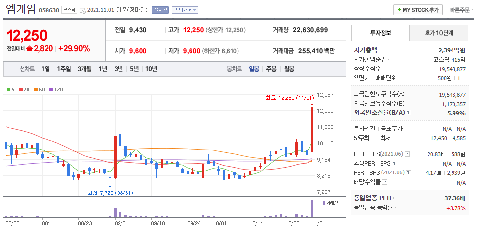 게임 개발 및 공급을 주요 사업으로 하는 기업임. 웹사이트 www.mgame.com 포털사이트에서 온라인 게임과 광고를 서비스함.