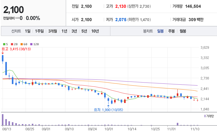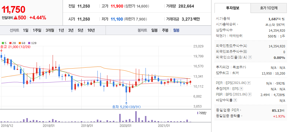 이글벳 ( 044960 : 코스닥 ) - 월봉 / 네이버금융 참고