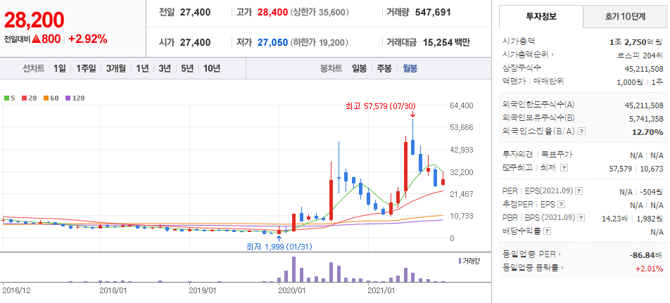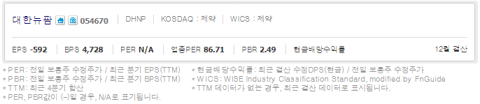 대한뉴팜 (054670 : 코스닥 ) / 네이버금융 참고