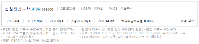 진원생명과학 ( 011000 : 코스피 ) / 네이버금융 참고