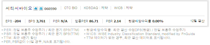 씨티씨바이오 ( 060590 : 코스닥 ) / 네이버금융 참고