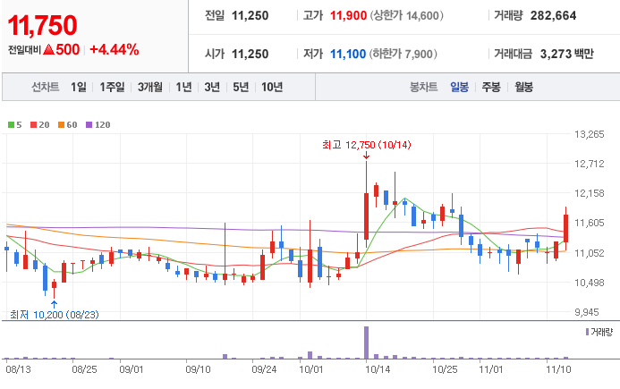 대한뉴팜 ( 054670 : 코스닥 ) - 11월 12일 장 마감 기준