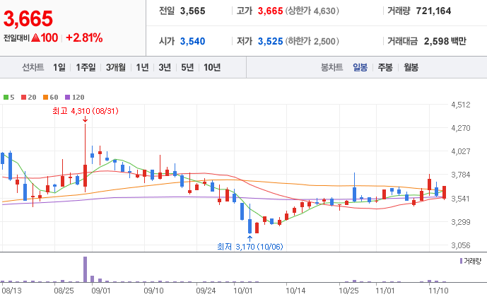진원생명과학 ( 011000 : 코스피 ) - 일봉 / 네이버금융 참고