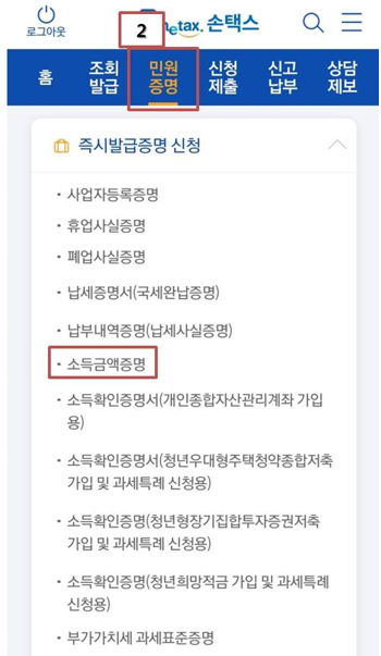 국세청 손택스 어플에서 소득금액증명원 발급하는법