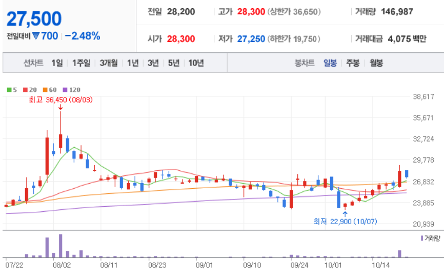 조비 ( 001550 : 코스피 ) - 일봉 / 네이버금융 참고