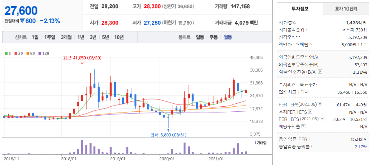 조비 ( 001550 : 코스피 ) / 네이버금융 참고