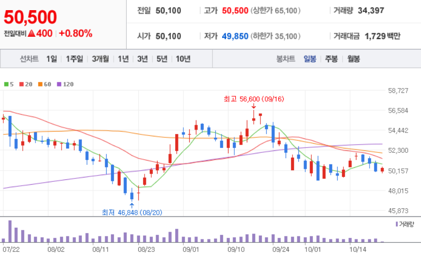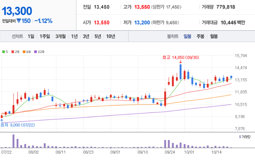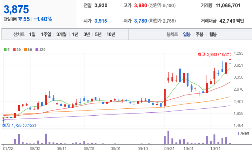 10월 21일 장중 기준