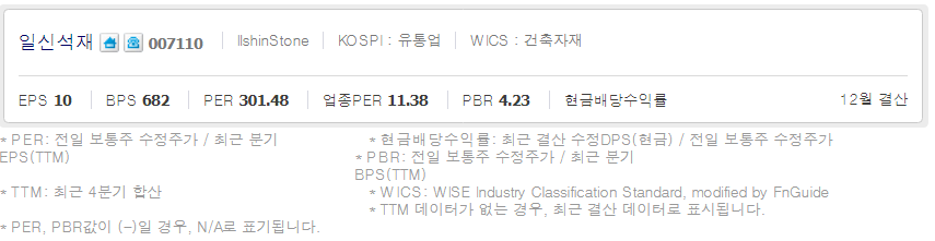 일신석재 ( 007110 : 코스피 ) / 네이버금융 참고