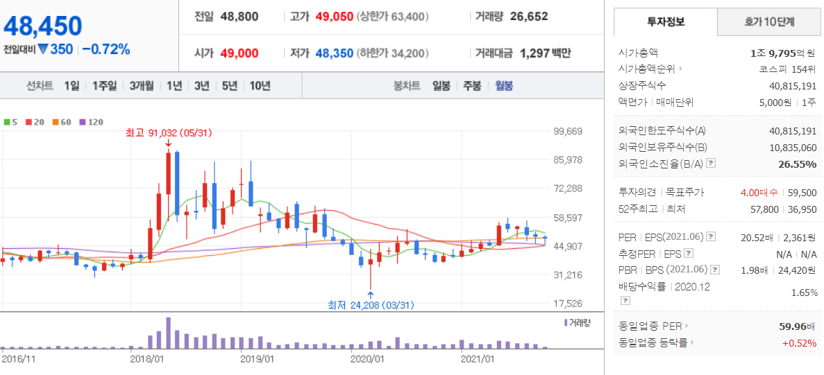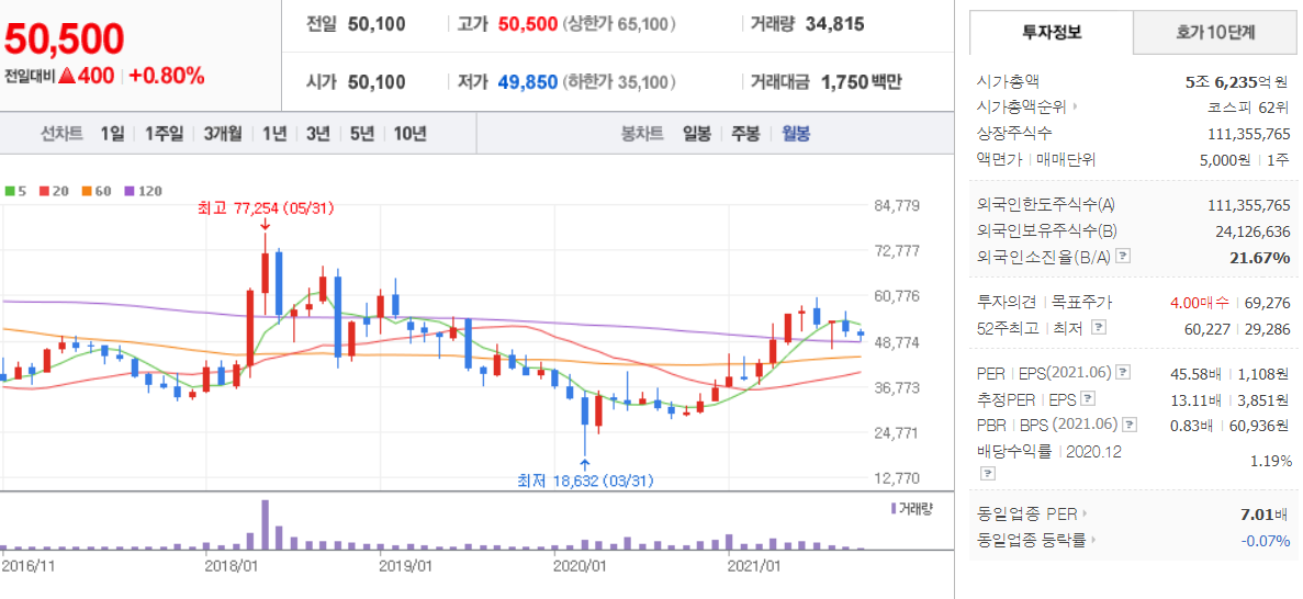 현대건설 (  000720 : 코스피) -월봉 / 네이버금융 참고