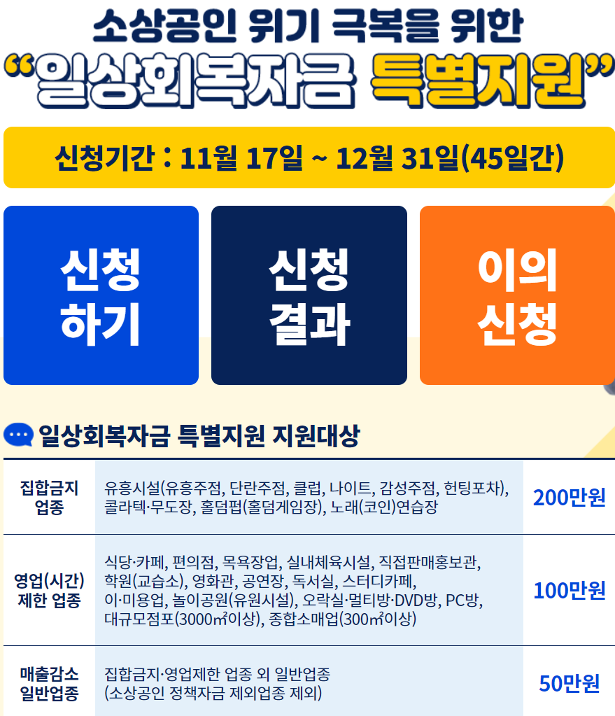 일상회복자금 특별지원 지원 소개, 신청하기, 신청현황확인 등