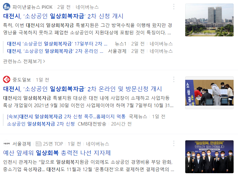 대전시 소상공인 일상회복자금 / 네이버뉴스 참고