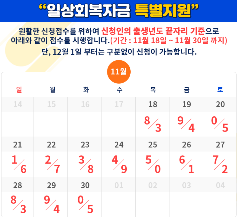 (기간 : 11월 18일 ~ 11월 30일 까지 ) 12월 1일 부터는 구분없이 신청이 가능합니다.