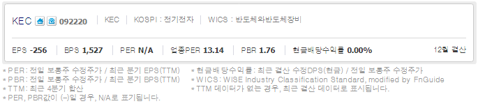 KEC (  092220 : 코스피 ) / 네이버금융 참고