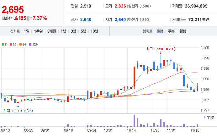 성창오토텍 (  080470 : 코스닥 ) - 일봉 / 네이버금융 참고