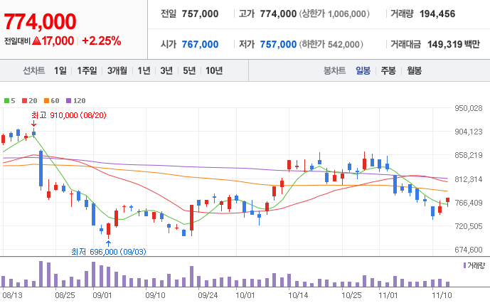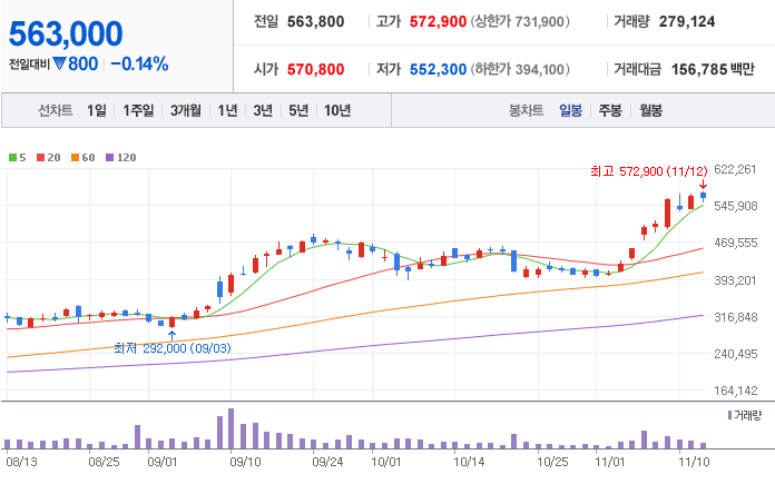 LG화학 ( 051910 : 코스피 ) - 11월 12일 장 마감 기준