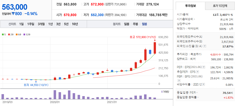 에코프로비엠 (  247540 : 코스닥 )  / 네이버금융 참고