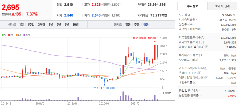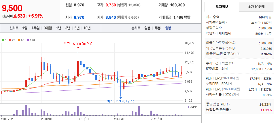 성창오토텍 (  080470 : 코스닥 ) / 네이버금융 참고