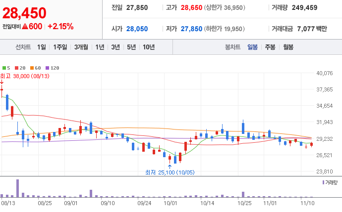 센트락모텍 ( 308170 : 코스피 ) - 11월 12일 장 마감 기준