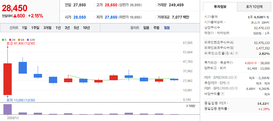 센트락모텍 (  308170 : 코스피 ) - 월봉 / 네이버금융 참고