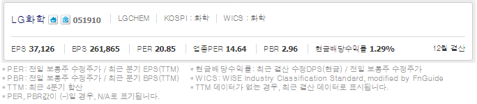 LG화학 (  051910 : 코스피 ) / 네이버금융 참고