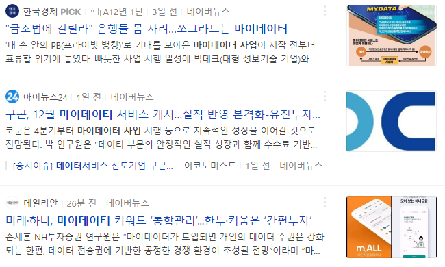 마이데이터 관련주에 대해 정리해 보도록 하겠습니다.