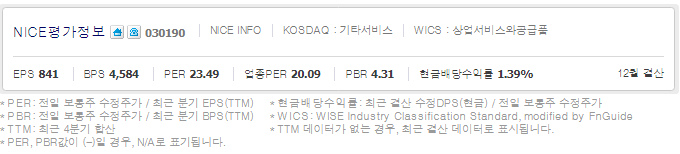 NICE평가정보 ( 030190 : 코스닥 ) - 11월 12일 장 마감 기준