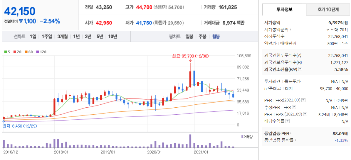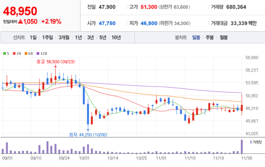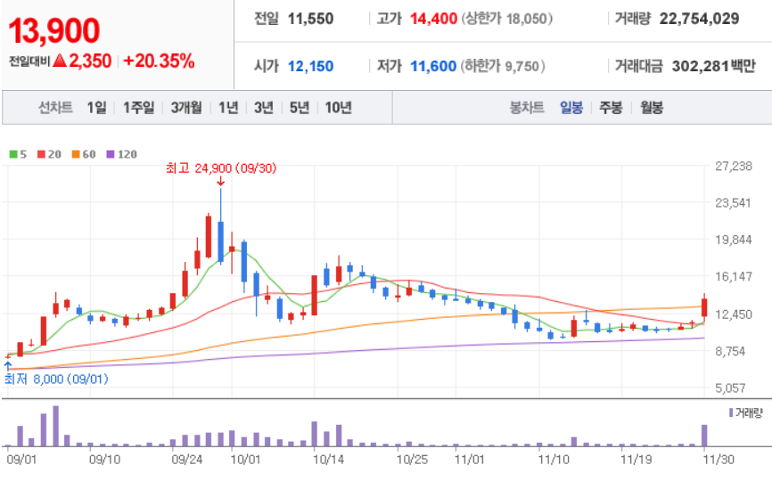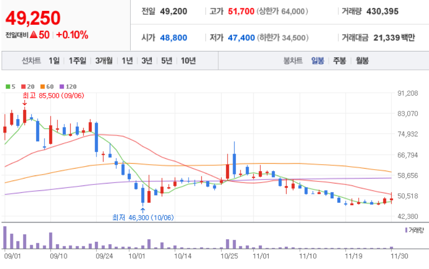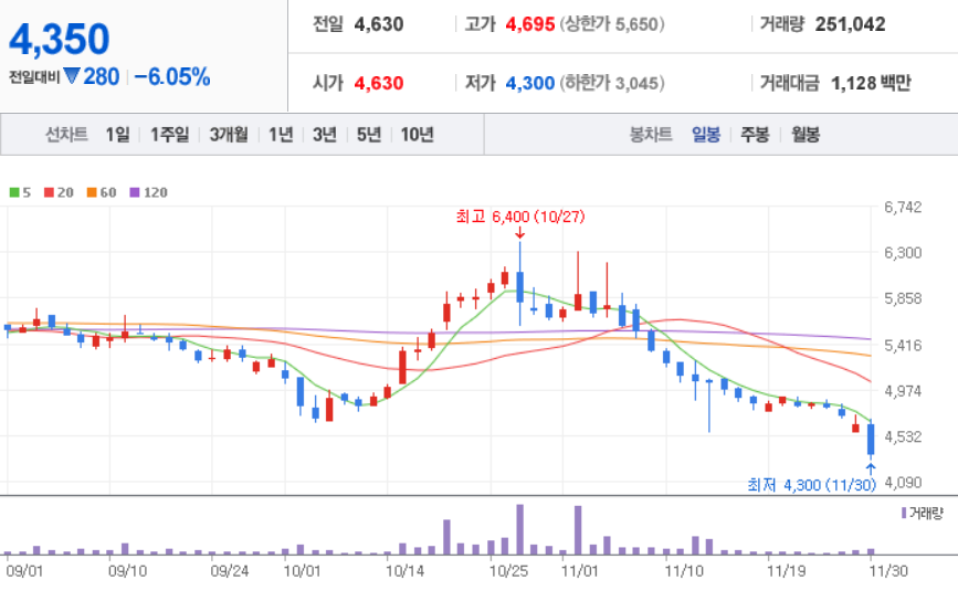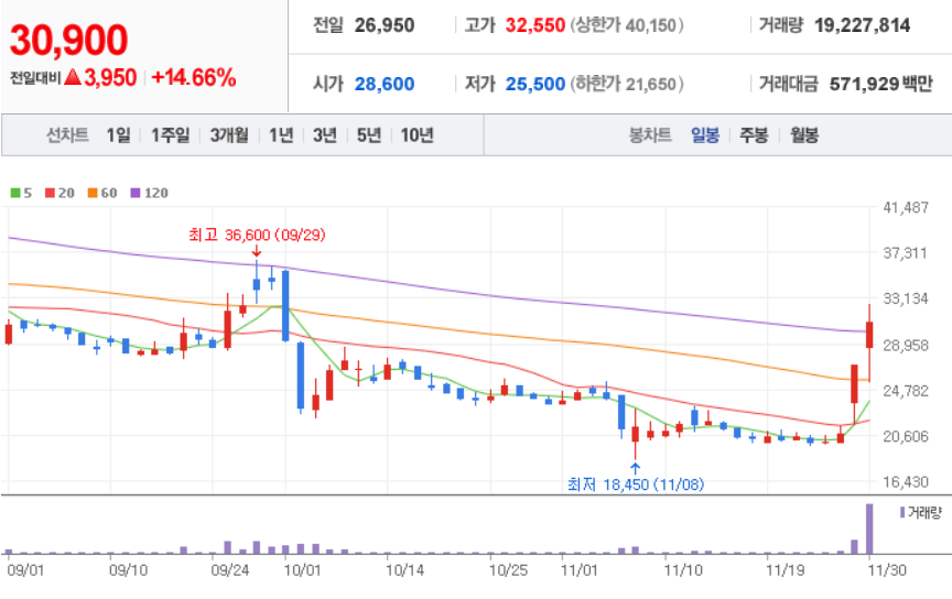 삼천당제약 ( 000250 : 코스닥 ) - 11월 30일 장 마감 기준