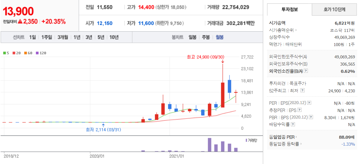 2019년 12월 1일 엔에이치스팩11호와 합병하여 코스닥시장에 상장하였습니다.