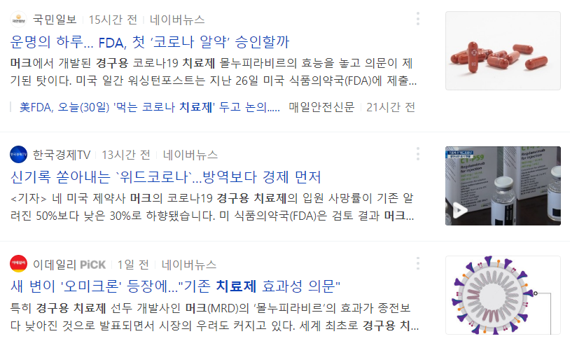 오미크론 변이 바이러스가 나타면서 전 세계가 코로나 바이러스 대유행에 대해 우려하고 있습니다. 기존 백신이 오미크론 변이 바이러스에 대해 효과는 미비하고 코로나 경구용 치료제가 더 나을 거라는 제약사의 언급이 있었습니다. 또한, 정부에서도 집에서 치료하는 확진자를 위해서 먹는 약을 더 구매해서 서둘러 공급하기로 했으며 지금의 방역 패스는 6개월까지만 인정한다는 발표가 있어 경구용 코로나 치료제가 부각되고 있습니다.