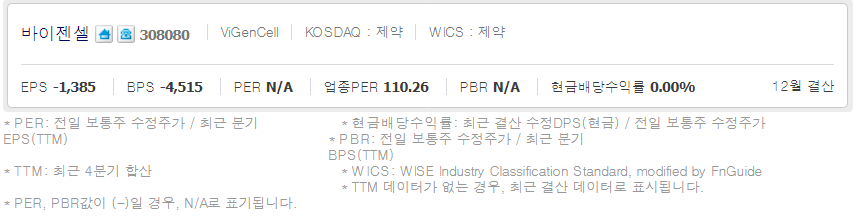 바이젠셀 ( 308080 : 코스닥 ) - 12월 13일 장 마감 기준