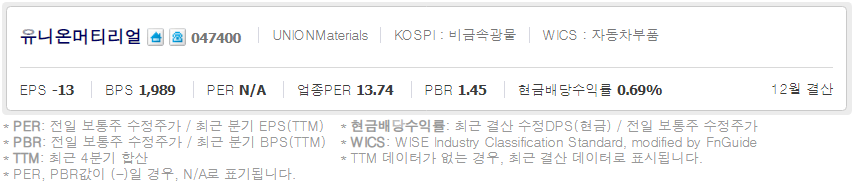 1. 유니온머티리얼 ( 047400 )