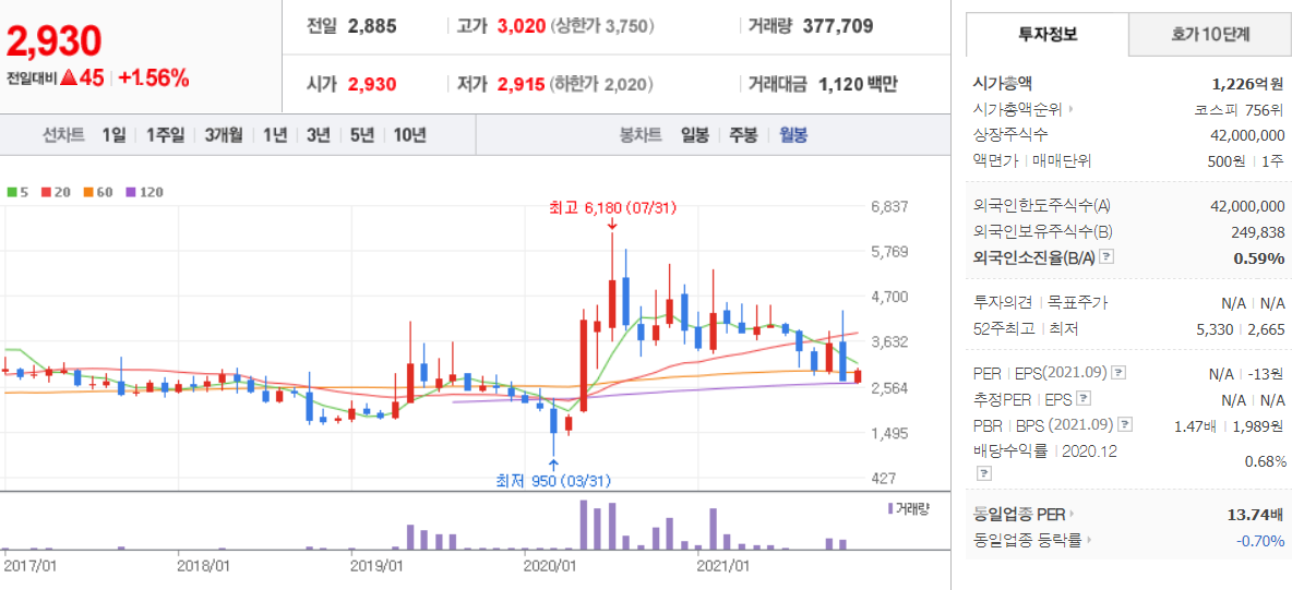 시노펙스 - 월봉 / 네이버금융 참고