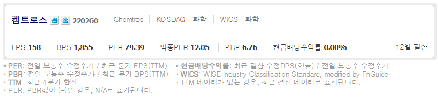 켐트로스 ( 220260 : 코스닥 ) - 12월 6일 장 중 기준