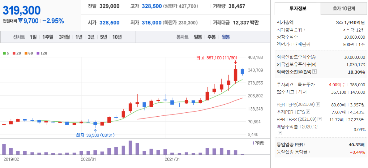 솔브레인 - 월봉 / 네이버금융 참고