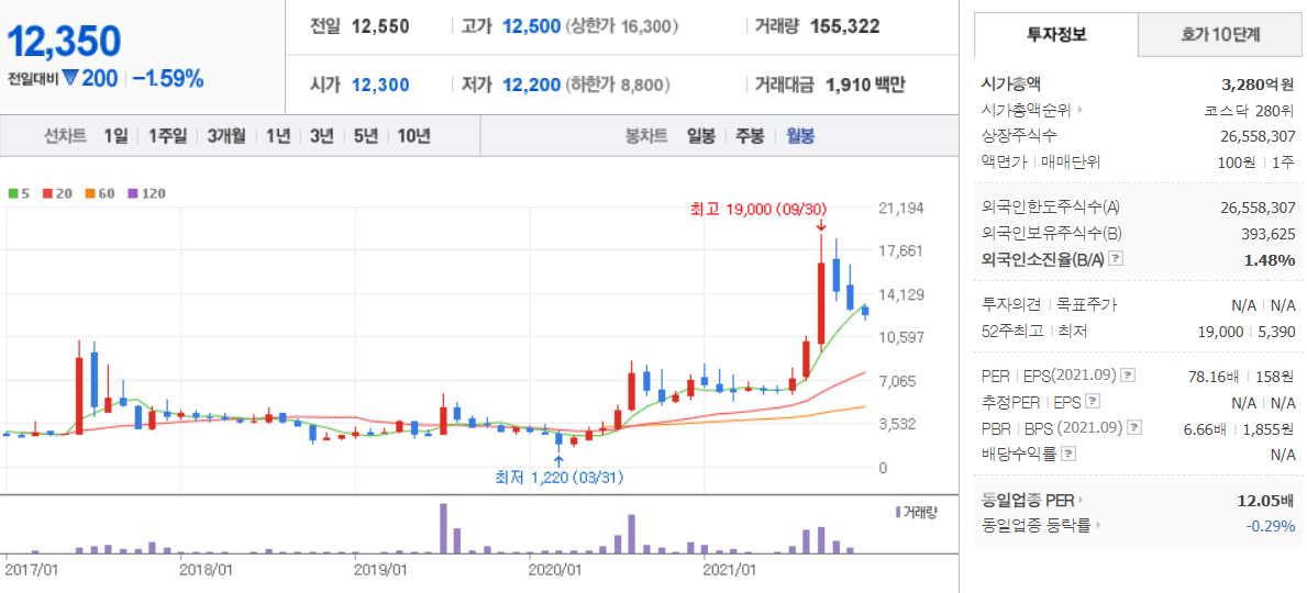에이피티씨 - 월봉 / 네이버금융 참고