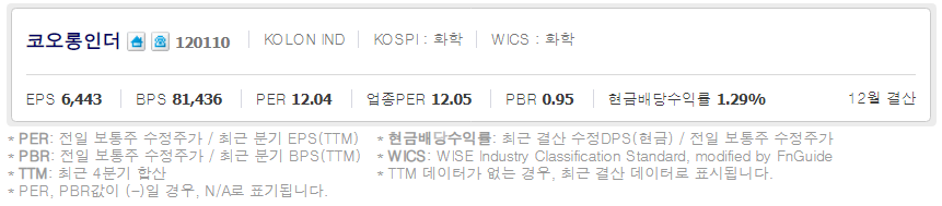 코오롱인더 / 네이버금융 참고