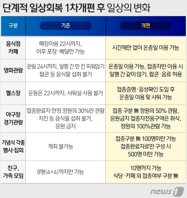 식당과 카페 등에 적용된 운영시간 제한은 전면적으로 해제되고 음식점이나 카페를 이용할 때 시간 제약을 받지 않고 이용이 가능해집니다.