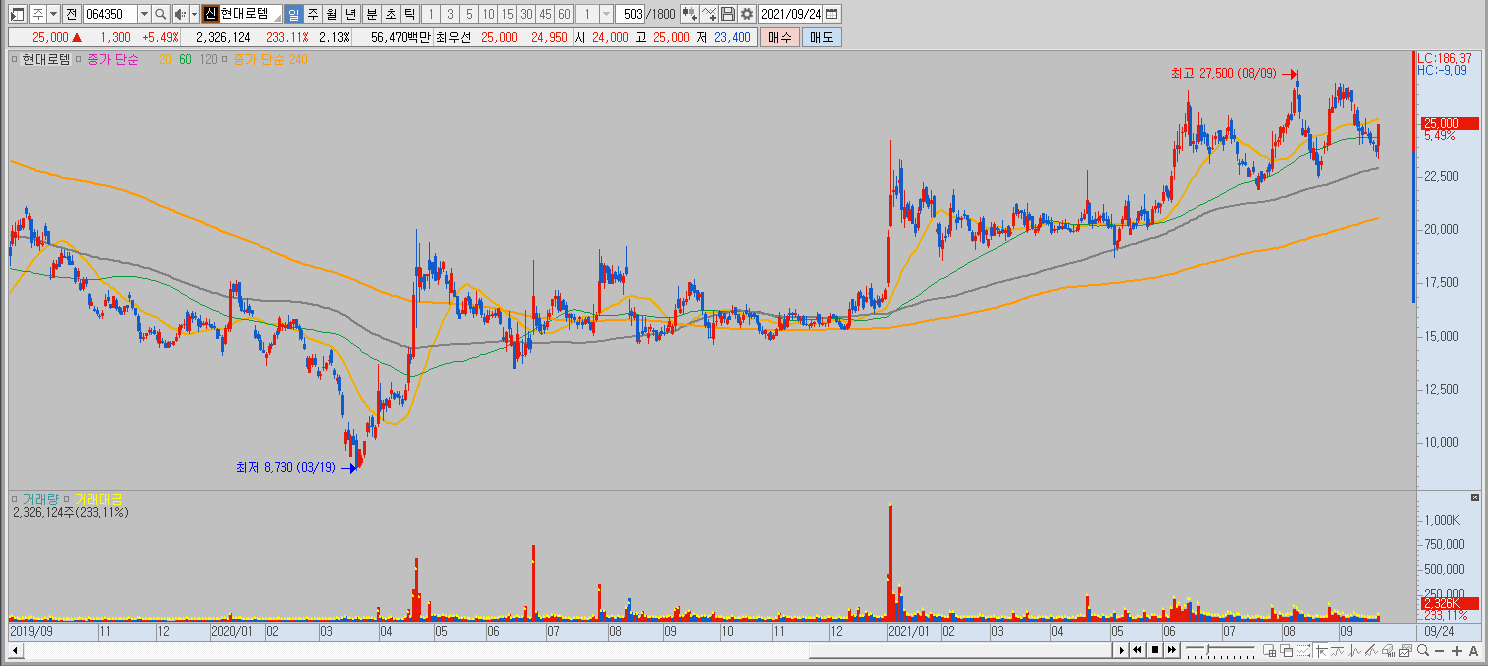 현대로템 064350 | 홈페이지 홈페이지http://www.hyundai-rotem.co.kr 전화번호 전화번호055-273-1341 | IR 담당자 031-8090-8488 주소 주소경남 창원시 의창구 창원대로 488 KSE 코스피 운수장
