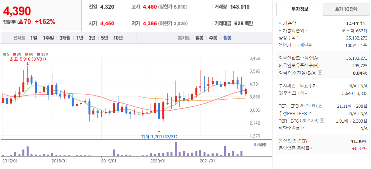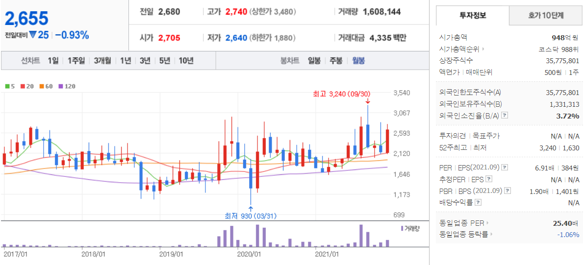 이수페타시스 - 월봉 / 네이버금융 참고
