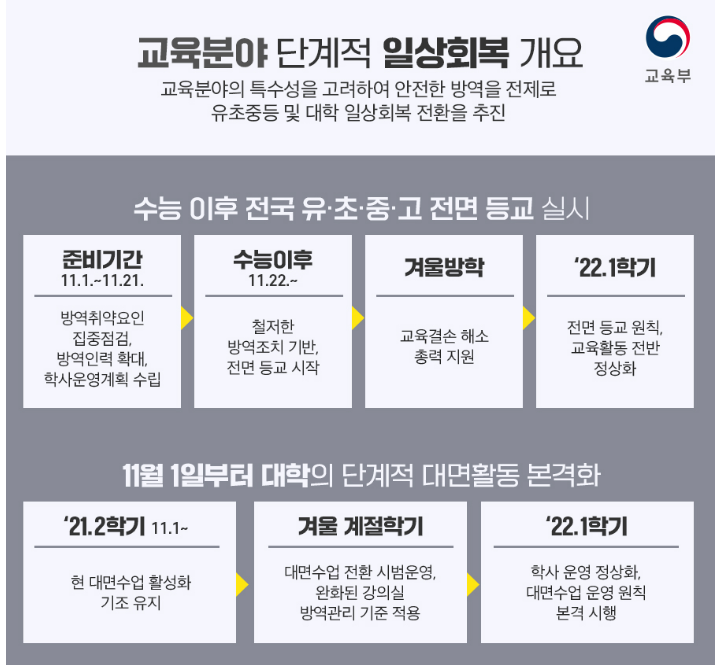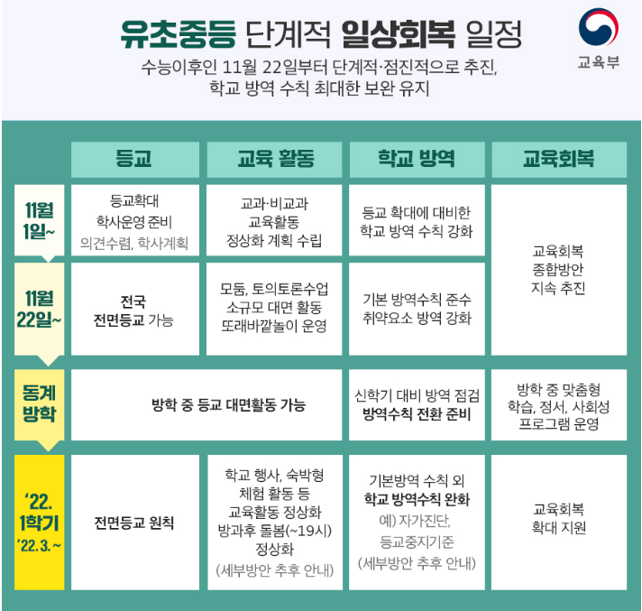 1. 유초중등 단계적 일상회복 일정 ( 서울시 초중고 전면 등교 )