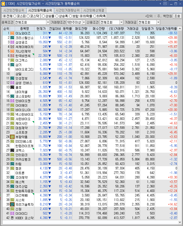 시간외 특징주