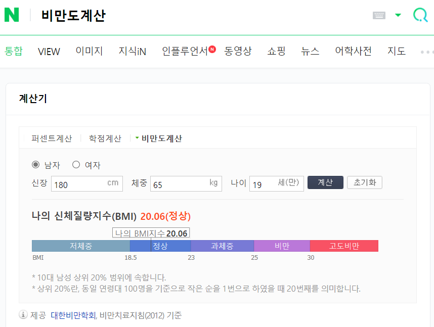 7 ) BMI 지수( 비만도 계산 )가 정상 기준에 충족하지 않은 경우