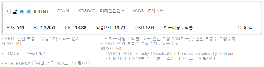 다날 (  064260 : 코스닥 ) / 네이버금융 참고