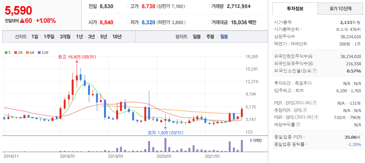 초록뱀미디어 (  047820 : 코스닥 ) - 월봉 / 네이버금융 참고
