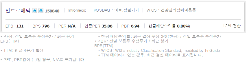인트로메딕 (  150840 : 코스닥 ) / 네이버금융 참고