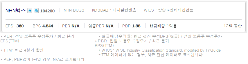 NHN벅스  (  104200 : 코스닥 ) / 네이버금융 참고