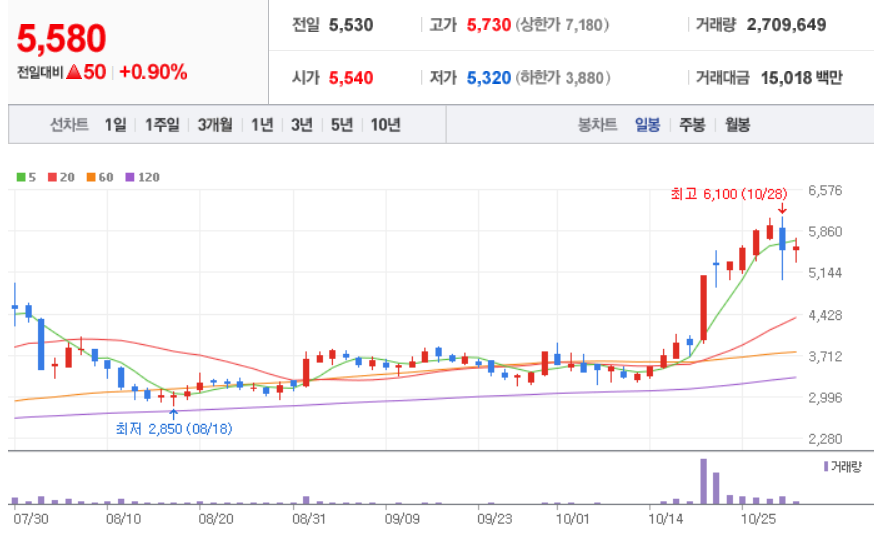 초록뱀미디어 (  047820 : 코스닥 ) - 일봉 / 네이버금융 참고