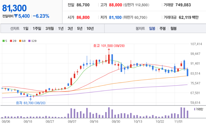 현대중공업 ( 329180 : 코스피 ) - 11월 5일 장 마감 기준