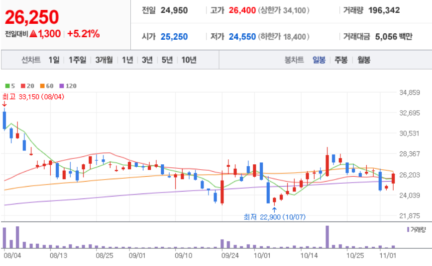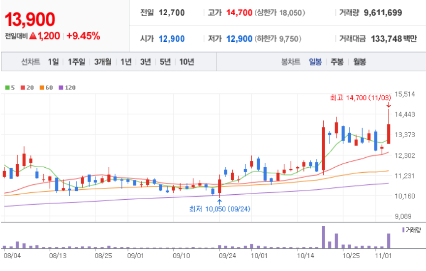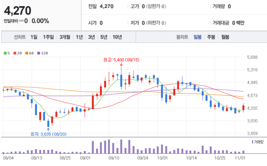 11월 3일 장중 마감 기준