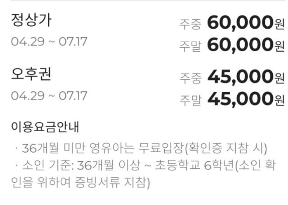 원마운트 수영장 이용요금